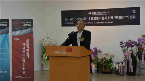 20151013,由中国雕塑学会和韩国雕刻家协会共同举办的“中韩现代雕塑交流展”在韩国首尔艺术殿堂(Seoul Arts Center)开幕,中国雕塑学会会长曾成钢、韩国雕刻家协会会长韩镇燮、名誉理事长金永元出席了开幕式并作致辞。此外,中国雕塑学会副会长孙振华、副秘书长林岗、事业发展部部长殷小烽、办公室主任田华丰、对外联络部副部长郭航等学会代表,以及韩方代表Crown-Haitai集团会长尹荣达、国会议员姜锡勋、诚信女子大学教授金正喜、评论家尹进燮、韩国雕刻家协会和雕塑界代表50余人共同出席了开幕式。同时,中国雕塑家的作品也在韩国雕塑艺术博览会(International Sculpture Festa 2015)特设的中国展区进行展出,展览将持续一周。